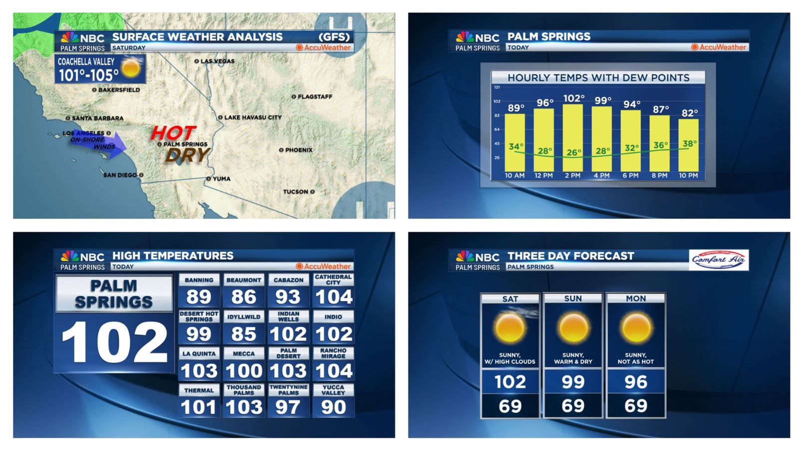 Coachella ValleyCabazonCathedral CityDesert Hot SpringsIndian WellsIndioLa QuintaMeccaPalm DesertPalm SpringsRancho MirageThousand PalmsTwentynine PalmsYucca ValleyHigh Temperatures