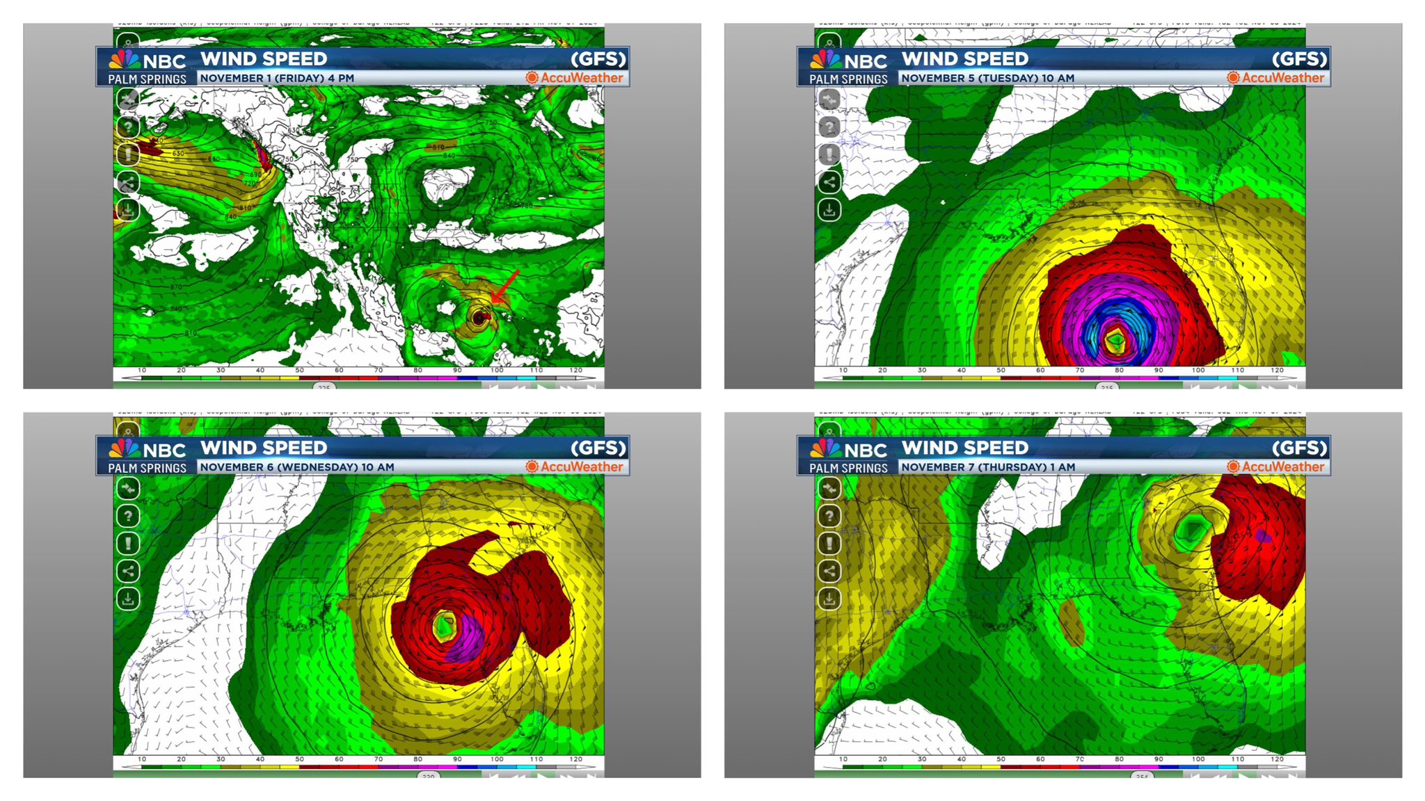 This particular scenario has a possible Hurricane making landfall in the Big Bend area of Florida on November 6... eerily similar to Helene in late-September.