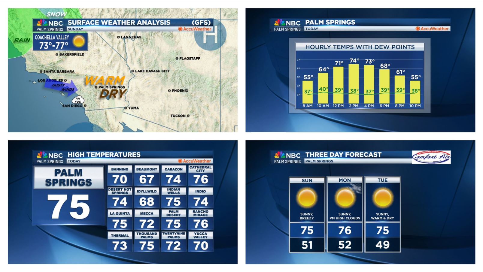 Coachella ValleyCabazonCathedral CityDesert Hot SpringsIndian WellsIndioLa QuintaMeccaPalm DesertPalm SpringsRancho MirageThousand PalmsTwentynine PalmsYucca ValleyWeather