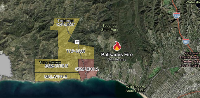 Pacific Palisadesbrush fireLos Angeleshigh windsevacuationshelicopterssuper scooper planesfirefightingno injuriesno building damagefire cause unknown