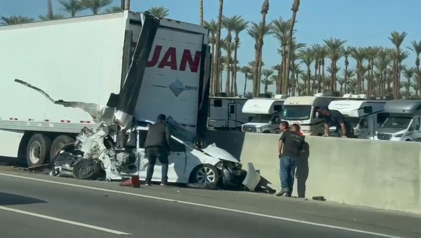 One Person Killed in Major Accident on 10 Freeway Westbound Near Washington Exit, Small Vehicle Trapped Under Big Rig