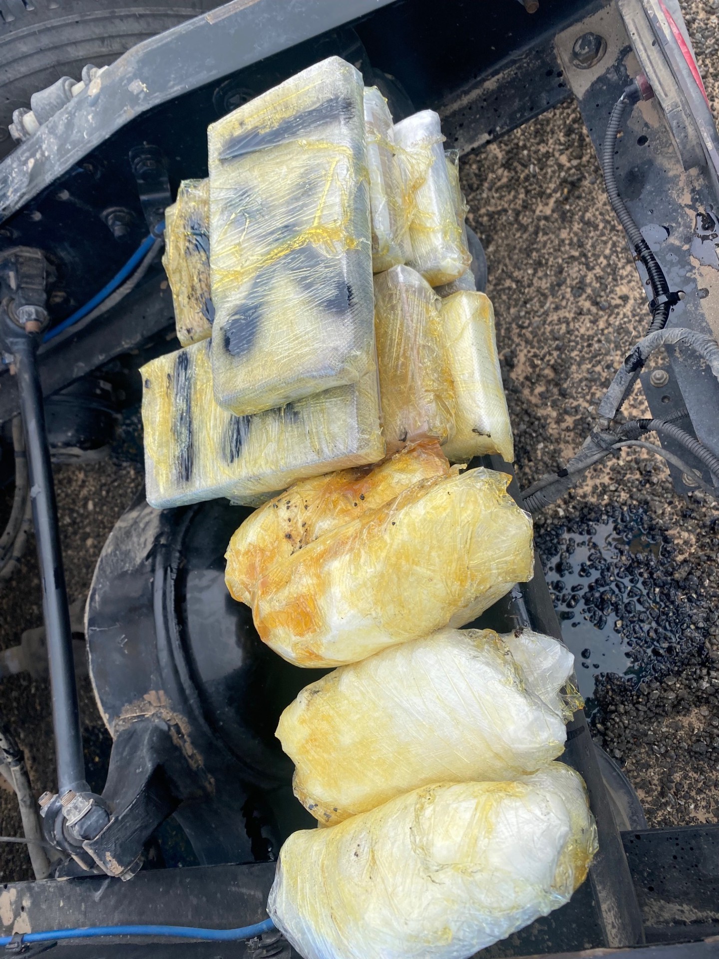 Upon closer inspection, agents found fresh tool marks on the axle head, which prompted further examination. They uncovered 14 packages wrapped in plastic cellophane, a typical sign of drug smuggling. Tests later confirmed the bundles contained 17.5 pounds of cocaine, valued at approximately $198,500, and 8 pounds of methamphetamine, worth an estimated $14,500.