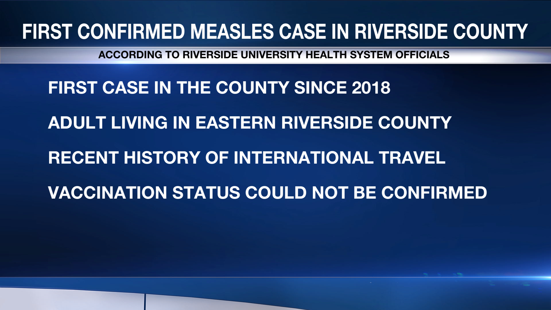 Riverside Countymeasleshealth officialsinternational travelvaccinationMMR vaccineCalifornia Department of Public HealthDr Jennifer Chevinskymeasles symptomsvaccine clinics
