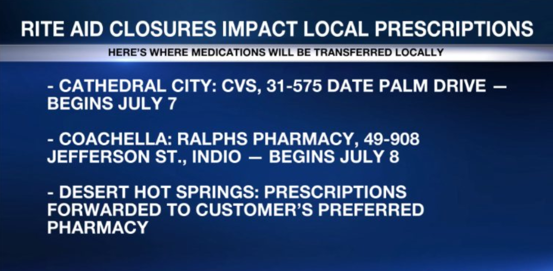 All Coachella Valley Rite Aid Stores Closing, Prescriptions to move to nearby pharmacies