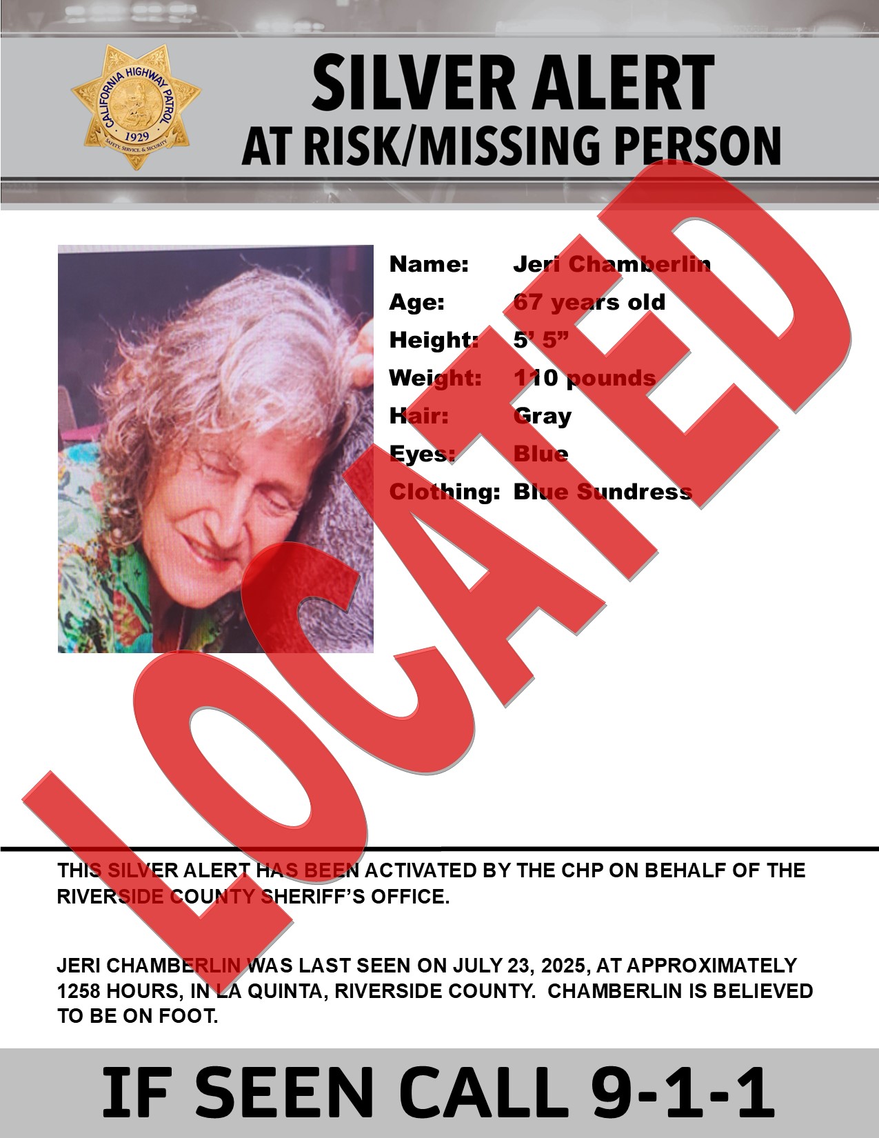 Missing At-Risk 67-Year-Old Woman Last Seen in La Quinta Located