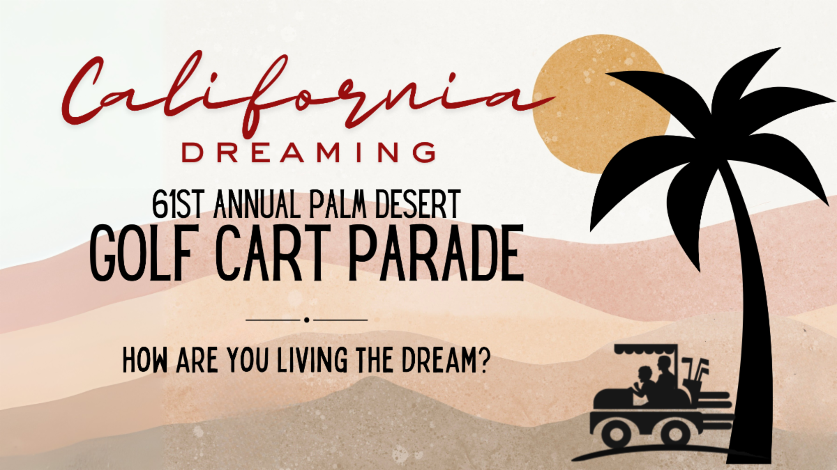 The annual Palm Desert Golf Cart Parade will take place Sunday, October 26th on El Paseo, marking the event's 61st year. This year's theme is "California Dreaming."